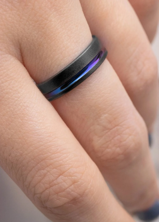 Black titanium ring with a blue purple gradient Titanium Wedding Ring men Wedding titanium band Handmade jewelry gift